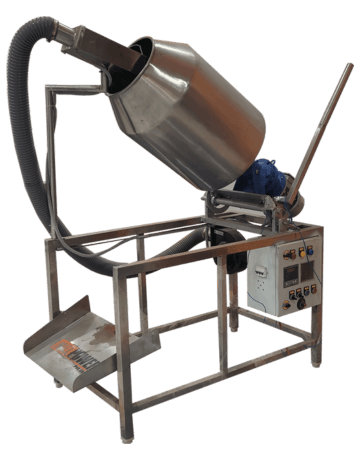 Medium-capacity machines for 50–500 kg/hr with blowers and mixers. Easy to clean, easy to operate.